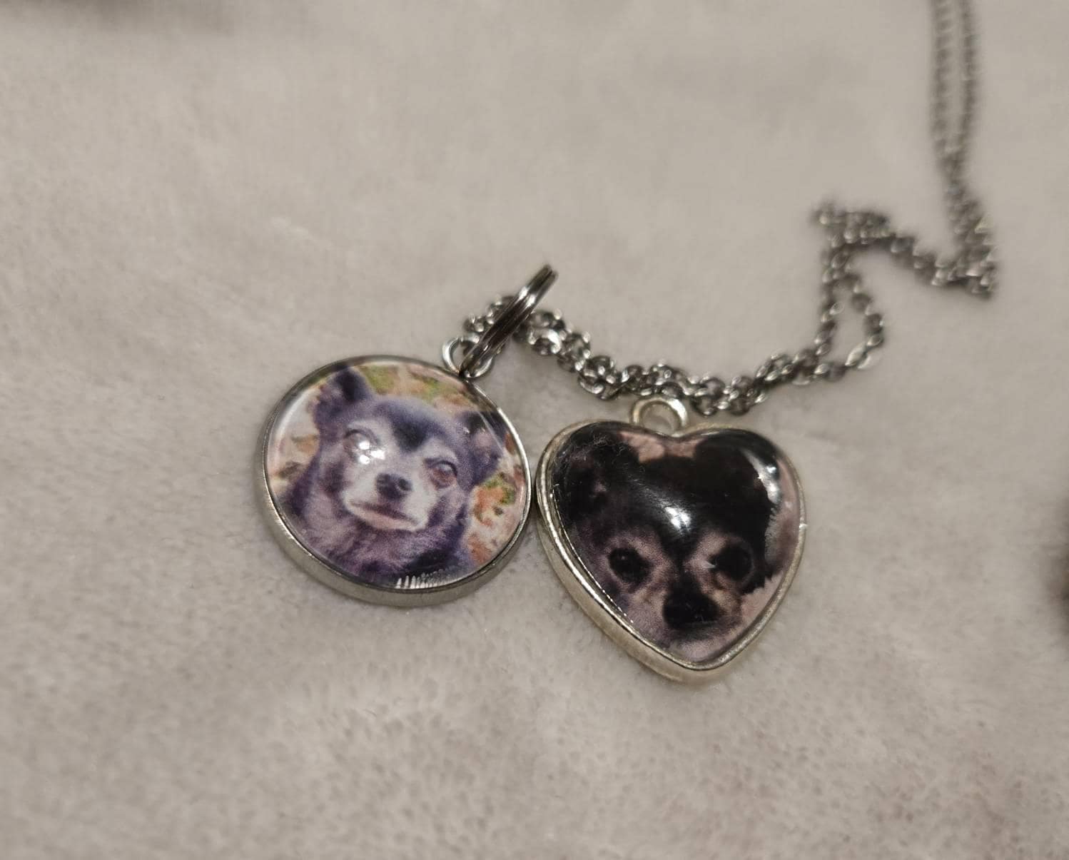 Our handmade, personalized photo charm. A custom portrait of your child, grandchild, niece, nephew, best friend, pet, or any sweet face that you'd like to add to your charm bracelets, necklaces, zipper pulls, pet memorial gifts, or keychains. Use your imagination! You just attach your photo to an Etsy message (available on our shop page named "contact", we'll verify receipt of your photo and turn it into a custom, heart shaped photo charm! Available in silver finish only. It will arrive with a "jump ring" attached so you can slip it on your selected jewelry or keychain, etc. 18 - 20mm in diameter. Each photo charm is made from stainless steel so it will not rust or lose it's color, and is covered in domed, magnifying glass. Our portrait charms are water resistant, but not completely water proof so if you're wearing it on jewelry, make sure to removed before showering, doing the dishes, or dancing in the rain.
